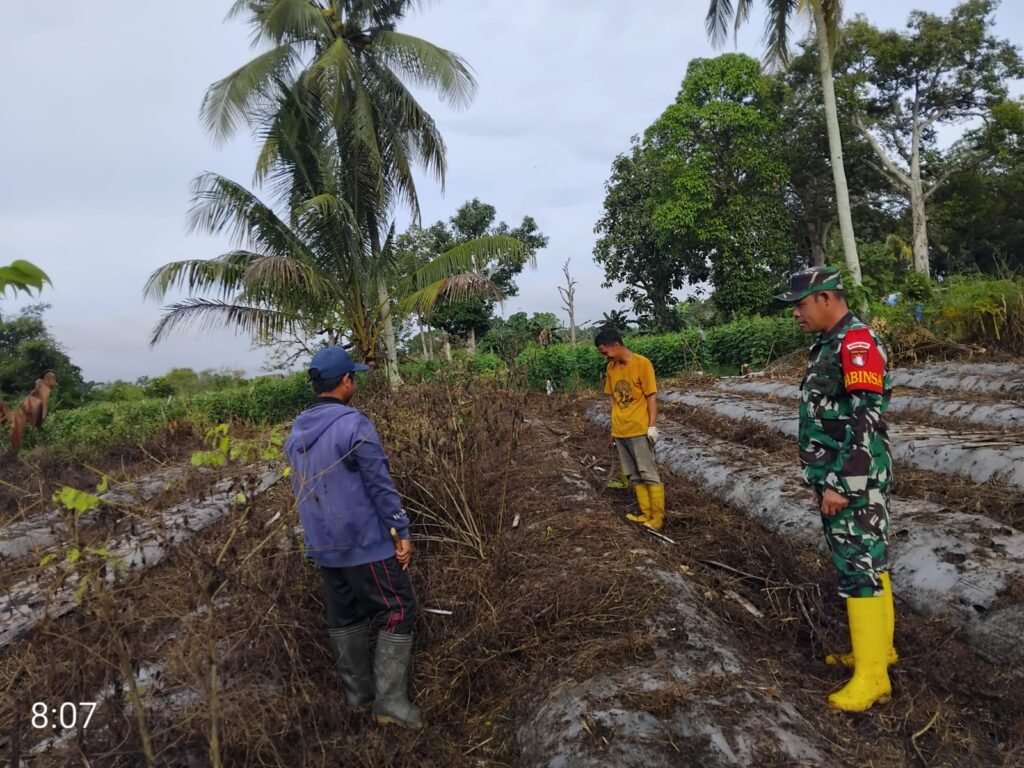 LAS, HST – Babinsa Koramil 1002-04/Labuan Amas Selatan mendampingi Kelompok Tani Bina Karya menyiapkan lahan penanaman cabai guna mendukung program ketahanan pangan.