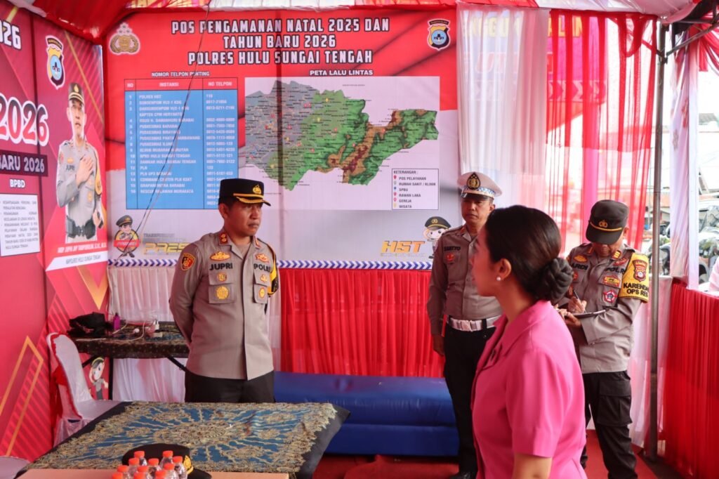 Kegiatan dilaksanakan pada Senin (22/12/2025) oleh AKBP Jupri JHP Tampubolon, didampingi Ketua Bhayangkari Cabang HST Ny. Mei Jupri, serta pejabat utama Polres dan pengurus Bhayangkari. Kunjungan ini menjadi langkah krusial menjelang perayaan Natal dan Tahun Baru yang membutuhkan keamanan optimal.