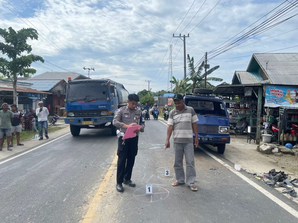 LABUAN AMAS UTARA, HST – Unit Gakkum Sat Lantas Polres Hulu Sungai Tengah (HST) melakukan penanganan cepat terhadap insiden kecelakaan lalu lintas yang melibatkan satu unit sepeda motor dan mobil pikap di Desa Pemangkih.